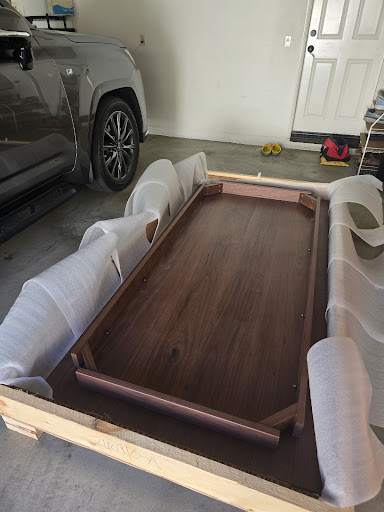 Once completed, our table was shipped via FedEx Freight in a well-secured wooden crate. To our relief, it arrived in perfect condition. The solid walnut tabletop was extremely heavy, requiring a few friends to help bring it inside, but the effort was well worth it. After assembling it, we instantly fell in love with our new table. The craftsmanship, materials, and finish are absolutely top-tier—truly a stunning piece.
