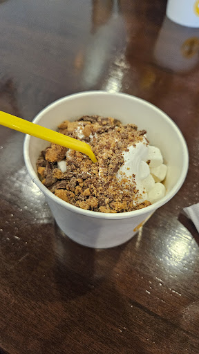 Read moreInconsiderate staff. Came here with my 3 young kids for some fro yo. The tv was off and I was glad because my kids always zone out and spill their yogurt whenever it’s on. (We do come here fairly often). I have never asked for it to be shut off though in the past. But since we were the only ones in the shop I asked if it could please be left off when one of the workers walked over to turn it on. The girl working said no and that they “had to turn it on” as part of their opening process. I said “okay, but could it wait just 5 more minutes til they are done with their yogurt?” And she said no. Really?! Is this a big deal? Maybe not - I know they have a tv in here and I take my kids here knowing that but it seemed like a reasonable request since it had already been off and no one else was there ??? Didn’t appreciate it. Maybe they should focus more on the dirty handprints all over the door or turning on the open sign than being weirdly...