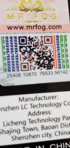 Purchased a Mr Fog Max and after checking the code on the back it was a fake I called and they acted like they couldn't understand English.... This is not the way businesses should be I wasn't wanting my money back I was telling them how they could harm people being fake... But...