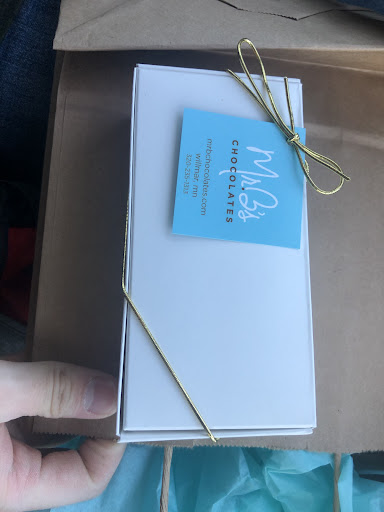 Read moreI am a mail carrier in Spencer, Iowa. I received a box of Mr. B's Chocolates from the folks at Edward Jones for Christmas. I am not usually a sweets eater, I decided I would take them to work and share with my coworker. I took them home and opened up the box. The chocolates were beautiful! I chose the passion fruit chocolate... it went from there! THE MOST DELICIOUS CHOCOLATES I HAVE EVER TRIED! They did not go to work, they went in my belly! Thank you Edward Jones...