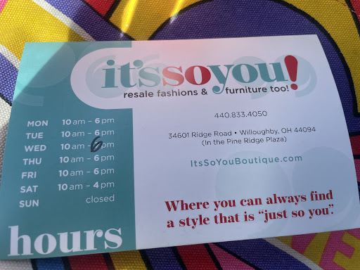 Read moreSo I went to a Consignment/boutique (@It's So You in Willoughby) to see if I could put some stuff on consignment to clear out my closet with things I can no longer fit (& I really don't wear heels anymore). So it's a bunch of things that have only been wored once & are still brand new and still in style, I simply can't fit or don't wear these thing anymore. I looked around while they went thru my stuff and then they called my name to talk about the things I brought in not even 2 minutes later. So I get to the counter and not 1 out of the 40 items I brought in was acceptable for consignment, but the things I saw while looking around for those 2 seconds couldn't even compare to the condition of my belongings. Or it is that, I am BLACK WOMAN, and I don't have white woman clothes. "Well, she really didn't give me a reason why but we're not accepting these, or boots, only spring stuff." Me: "Well, there's some Sam Edelman's sandals, only been wore once." "Well, you can bring those back during the Spring". "But you just said you're accepting Spring stuff not winter". How does that make any sense? So if you are in Willoughby, do not spend your money here BLACK WOMEN. They don't respect...