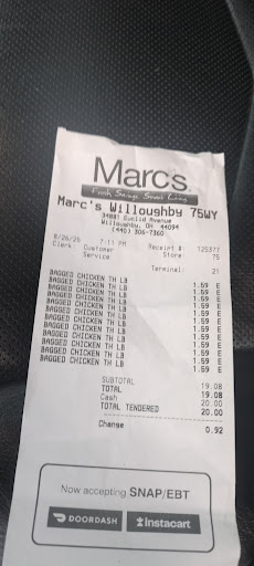 Read moreThis Marc's has a different vibe compared to other Marc's stores. Maybe because it's new and it doesn't have that "broken in" feeling that the other stores have but this Marc's just doesn't feel the same. The employees are scarce so you won't run in to them unless you are at the checkout. It is very clean and organized even the closeouts section. The deli is understaffed as usual with Marc's but the people that work in the deli and this particular store are different in that they are trying to get your order and get it to you in a speedy manner, they are friendly, and the have excellent customer service skills. The prices at this Marc's seem to be a lot higher than the other stores, possibly because of the rent in that shopping center or something. They seem to carry more of certain items like pharmacy and cosmetics but less of the traditional food items. Their closeout section does have some nice stuff in it that I haven't seen at other locations but I don't think it is as big as the other stores. Overall it is not the typical Marc's experience and not in a good way. I will probably bypass this location and use either the mentor ave or willowick stores...