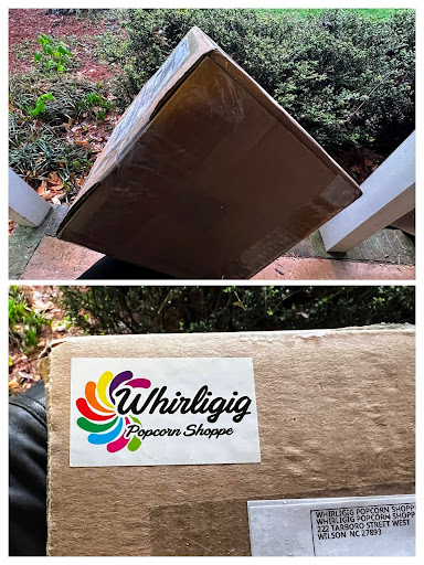Got two different versions of the Whirligig Popcorn. The Cheddar Cheese and the Whirligig Mix. I tried the Cheddar Cheese first and it was outstanding. Fresh, resealable package, flavorful, fun and in a resealable bag. I would show you a picture of it but once I opened it was gone while watching a movie with my wife on Saturday night. Shipped well and arrived in just a few days directly to my door. Look forward to visiting their store in-person.