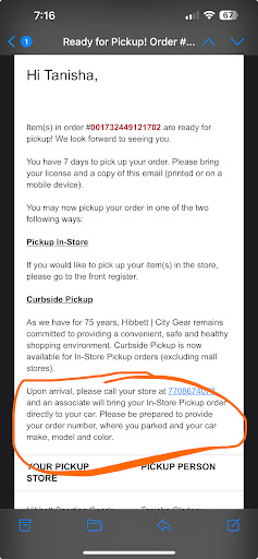 Read moreHorrible customer service. I went to this location to pick up a backpack. On the email, it clearly listed that curbside pickup is available and to call the store for pickup on arrival. Well I call for pickup and the girl says we don’t do curbside. I said your email says you do. She says my manger says it’s a no. Really, it’s a no! I wouldn’t have ordered if I needed to go in. I said well you guys should take that out of the email. She said okay we will see what we can do. It’s very inconvenient to order a pickup and then it’s not available for pickup. I do curbside for a reason. I would have ordered from another store if I...