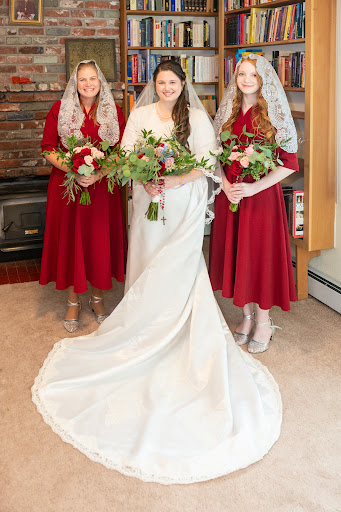 After noticing some women in my parish wearing veils, asking around on a couple online clubs I'm part of, and doing a little bit of research, I decided to start veiling. A few people I asked recommended Veils By Lily and I'm so glad I took their advice! I ordered a white starter veil, which arrived just in time for me to wear for the first time on All Saints Day, 2019. Not long after, I got the white satin veil pouch to keep the veil nice. They're both holding up well after a little more than five years of veiling.