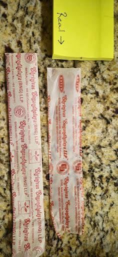 I am 99.99999% sure the Nag Champa incense I bought is fake. I buy thus stuff constantly from other places, this stuff won't stay lit (one stick has stopped burning twice) and has VERY little smell, only kinda smokey.