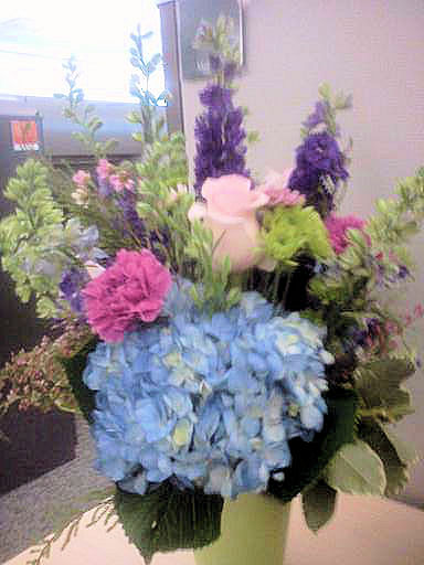 Read moreI received a surprise arrangement at work as an anniversary gift, and it came neatly packaged with a vase and a rather generous box of chocolates. The package was sturdy and built to prevent tipping, so the watered vase holding the blooms stayed put, and the arrangement was the envy of everyone in the office. Gorgeous and summery, and they've been on my table in the heat of summer for over a week now and are still beautiful. Wonderful mix of summer colors and styles of bloom. Everything was wonderful, right down to the flowing handwriting on the card.