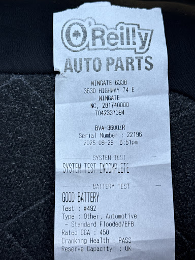 Read moreTested my battery 19 days ago and gave me a good battery result. My fiancĂ© changed my starter since it wasnât the battery according to Oâreillyâs he thought it may be the starter. $280 and 19 days later my car is completely dead. He jump started the car and behold we found that it was the battery. Luis did my battery check and Iâve been going to Oâreillyâs for a while. Iâll not be going back. Could have spent the $280 towards a...