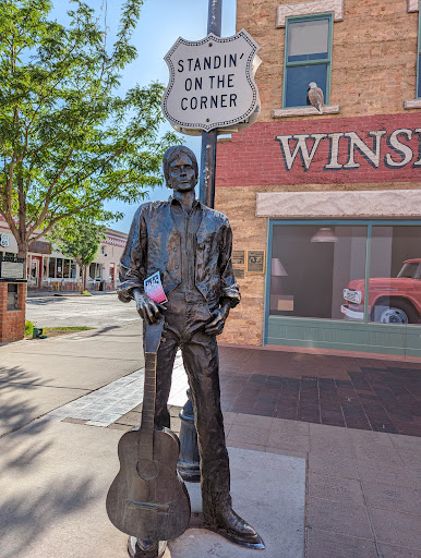 Eagles fans rejoice! Nothing less than a throwback pilgrimage of the best of times, yet, for all ages. The speaker outside is playing all of our favorite Eagles tunes, people lining up to have their photos taken, reminiscing, some were singing along, many were coming out of the huge Standin' on the Corner souvenir shop, lots were looking at the stickers on the Flatbed Ford, people hugging right up to the life-size bronze statues of the band, etc, etc, etc. So much to rave about, it's an experience, it's Free, plenty of parking, clean, ADA compliant handicapped parking, a cafe and places to buy drinks etc, but, don't miss going into the gift shop for a real Eagles immersion... Amazing variety of everything (not only Eagles things) with very good prices and awesome staff. It was nice to see so much kumbaya amongst tourists willing to take photos of people at this town square. Young ones or of the baby boomer generation like myself, all there for a common interest in great music and a tribute to the boys...