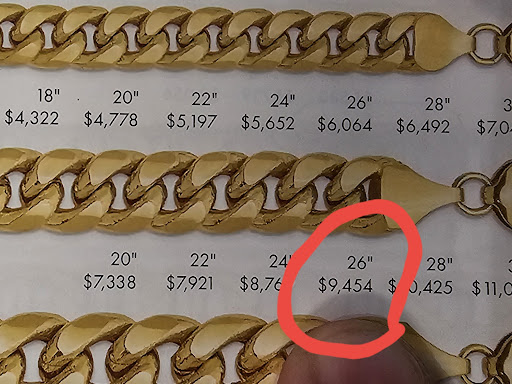 I also got the chain appraised by another Jeweler and without knowing the price I paid, they told me that it was appraised at $9375. I paid a total of $9248 at Windsor. In that other Jeweler's store I was shown a similar chain that had a higher weight for a listed price of $5900.