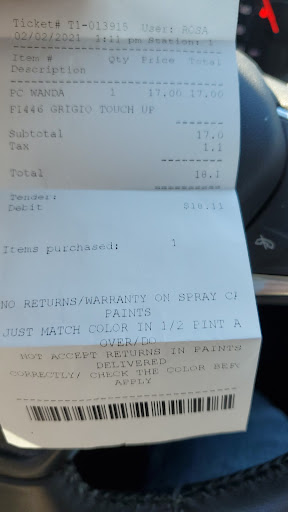 Read moreBe careful. I was sold touch up paint for 13.99. Then When it was time to pay , They charged me $3 For a bottle to put it in . I should have just told them to give it to me without the bottle To see how they would plan on Selling me a liquid without something to put it in. It seems like the older guy decided to charge more Once he saw that I was putting it on...