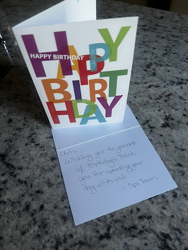 I had a 50-minute massage given by Svonne and it was great. She asked me a lot of questions beforehand to make sure I got what I wanted. I also added two other services, scaIp and hydration mask (two for $50). Although it was stated when I placed my order online, I did not see it and therefore did not know that they would be incorporated in my 50 minutes. Had I known that I would not have gotten them. It took time away from the massage and I wanted every minute of that massage! Even if it wasn't included in the 50 minutes, I don't think it was worth the money for them. Svonne was great and I highly recommend her. I will definitely request her next time. The robes were super soft and cozy. The locker room and amenities were very nice and clean. I used the sauna, the experience shower and the marble heated lounge-which were all great! I also had lunch by the pool and the food was excellent! Our waitress was awesome too. As for cons, they didn't have water bottles and were supposed to. We were told they ran out. To offer as snacks, they only had hot tea, whole apples, and nuts. In my experience, that area could use some improvement. My daughter is allergic to nuts-like many people are- so none of us had any. The dessert menu looked amazing, and they had about 10 different things which I spent a great deal of time reading, trying to decide what I wanted only to find out they didn't have it. Actually, they only had a few of what was listed. I had a great day, and the staff were very nice and accommodating. I would...