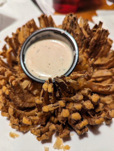 I'd like to note that several people came in after we did and didn't have anything said to them. The bar was also still packed. Our waitress was nice but I'm sorry the food for the most part was horrible. Our appetizer, the Rosebud, was pretty burnt/overcooked and barely cut. The outer part also seemed as if it was cooked with the onion skin left on.. or maybe it was just so burnt to a crisp that it tasted like that. We both ordered steaks. I ordered mine rare and my sister ordered hers medium rare. Hers came out beyond well-done and mine was more medium rare. Which wasn't a big deal with me, it happens.