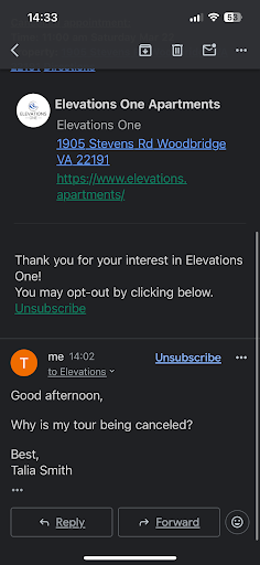 Read moreI am writing this review due to the neglectful behavior as a potential resident. I have been trying to reach this office regarding scheduling a tour and the only person who picks up is Tianna. The first time I attempted to schedule a tour online, I was told to call the office and couldn't even access the calendar. I called the office and was told by Tianna that tours were not being offered at that time BUT if we apply (by paying the application fee) we can tour the unit.... seems sketchy enough right? After a few weeks, I now see that I am able to schedule touring online through the website. Then last week after scheduling my tour I tried calling the office multiple times throughout the week to confirm the tour I booked for last Saturday (March 15, 2025 @ 2pm) and to make sure the unit I wanted to tour would be available as I am seeing online, I left multiple voicemails due to me not getting a response... Tianna finally called me the day before stating that the unit I wanted to tour is not available....NOT EVEN A MODEL.... Even after looking online TO THIS DAY (3/21/2025 @ 3:09pm) I am still seeing the same 3 units online that I've been seeing for the past few weeks. Yet nothing is available... The least you could do is get it off your website. I kept asking why is this so and all she could say was "we dont have any 1bd1bath available." I ended up not going to the tour even though she did not care to ask if I wanted to reschedule or anything that is all she had to say. I decided to book a tour online again for this Saturday just to receive an email AND text saying my tour has been cancelled TODAY (3/21/2025) THE DAY BEFORE AGAIN.... NO EXPLANATION, NO PHONE CALL, NO VOICEMAIL, NOTHING. Please see the attached emails and texts as this is very unprofessional and crude. Not sure what this community's issue is but they need to get it together. It is already hard enough to find an apartment but instances like this makes me want to stay far away from apartment complexes as this is...