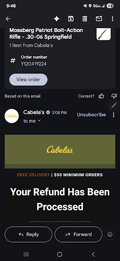 I'm even including a screenshot of my refund email receipt to show that I'm a real customer who actually bought and paid for an item but was unable to complete the purchase. This was a $643 purchase and your employees literally drove me to your competitor, Fleet Farm that very same day. I also included a screenshot of the text I received from Fleet Farm confirming I bought the same firearm there after being driven away by your abysmal...
