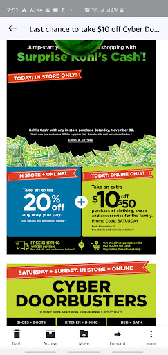 Read moreI had forgotten my Kohl's card, so the lady at the register asked if I'd like to just enter my information. I often forget about "store specific cards" so I declined, and she mentioned that I was able to use my Kohl's charge and pay it immediately for the discount. This sounded pretty good, but the card reader was on the fritz, and it double charged my bank account. When I called Customer Service (main branch, not store) to dispute the charge, they told me I'd receive word within about 48 hours after emailing them a screenshot of my account. One week later, I was sent a letter that said "No changes were made to your account."