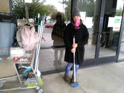 I am over at the Westgate Shopping Center quite a bit I live across the street. I'm retired and I do a lot people watching as a pastime. I sit in my walker and have something to eat and drink. Checking out the hustle and bustle. One thing about the Westgate it's clean you never see an overabundance of debris on the ground. The seemingly absence of trash in the parking spots in front of the shops is minimal, I'm on foot I walk around my city at my level I see a movie night fair amount of trash.Westgate not so much. Westgate Shopping Center is my first choice.As I was leaving I saw a woman sweeping the pavement in the rear parking lot she was sweeping one of the loading docks.Stacy loves to sweep Not too unlike the Sweeping Ladies in Philadelphia many women right after breakfast would sweep the sidewalks in front of Row Style homes sweeping the sidewalks was just another chore to those city dwelling Mom's of my past. Westgate Shopping Center has a well maintained parking lot.I believe Stacy has a lot to do with it's presentation everyday, Stacy has a need to sweep and she cares about her community and the shop owner's in the Westgate Shopping Center. I know Stacy gets a lot of satisfaction keeping the parking places in front of the shops and the rear parking lot clean and free of debris. I watched Stacy for a couple hours this evening she's a very focused and talented young lady with a broom in her hand. She is on the mission to sweep that parking lot. I have taken a few photos of Stacy at work she is doing an amazing job and so is Westgate Shopping Center for there true sense...