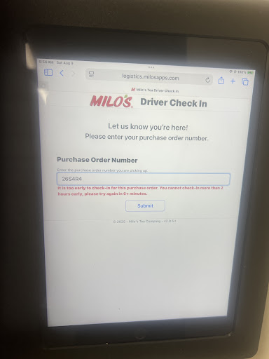 I'm a RE Garrison driver come in last night to pickup a preloaded trailer I understand there is no overnight parking and I respect that but I was finishing up my pretrip inspection on new the trailer I picked up when the lady working nights driving the yard truck came to me truck and told me she was the yard manager and I was taking to long asked me if I had check out (had my paper work) I sad yes and was told I would have to go outside the gate if I did that it would block the drive way but didn't realize milos had set a time frame for drop and hooks my company has not said anything to all the drivers that this is a milos policy in moore sc I'm thinking it's more like a power trip my company has been made aware of this cause several other drivers had complained about the same issue with the night yard manager but the lady in the shipping office at night is super nice there is no notice posted in the shipping office pertaining to the drop and hook policy maybe upper management could clarify this in a timely manner instead of being confronted in the yard by the night yard manager never had this problem going into milos during the day just at night has happened twice same sift same yard manager...