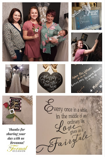 Read moreI recently visited A Formal Occasion in the hopes of finding my dream wedding dress, and I couldn't be happier with my experience. I even told myself that morning that I wouldn’t “say yes”, especially since it was my first day looking. When walking into the shop, I already knew it was going to be special because there was such a cute personalized chalkboard with my name on before we even walked in the door! Lucinda is the most incredible woman, especially when it comes to transforming what could be a daunting, overwhelming experience into something magical. I am definitely not the bride who is going to be overly emotional about dress shopping, but working with Lucinda helped me understand how significant this process can be; when she started talking about how it’s not what the dress looks like but how it makes you feel and tearing up because she cares so much, I joined her in shedding a few tears! Pat was also a lovely addition to the team; he makes you feel right at home and even offered to clean my ring while we waited for the first round of dresses to be selected. The quality of the dresses was outstanding, and the prices were very reasonable considering the high level of service and quality of the products. Overall, I would highly recommend A Formal Occasion to anyone looking for not just another wedding dress shop. Lucinda and Pat have truly hit the mark and understand exactly how to make this the most unforgettable experience anyone...