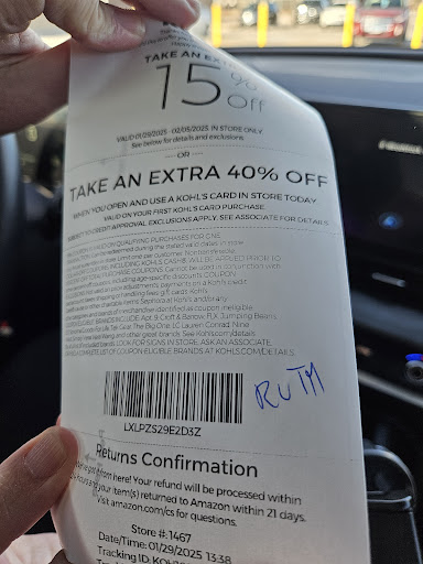 Ā Ā Ā Read moreKohls is a joke, how is this even still a store in 2024? I donāt typically ask for a military discount however when Iām buying new cloths and shoes for my 2 kids to replace their entire wardrobe thatās now too small, I wouldnāt mind getting a discount where I can. They informed me they only give military discounts on Mondays. āThank you for your service but only on Mondayā is what that says. Then I finally got time on a Monday to go and my kids pick out new shoes, some cloths, I figure might as well grab some other stuff we need since itās Monday and Iāll get the military discount. After ringing us up and putting in the military discount they inform us that those brands donāt allow them to give a military discount. But I did get 5 dollars in kohls cash. What an absolute joke. I will no longer be shopping there. Thanks for nothing. Update I like having how the owner has nothing to say...