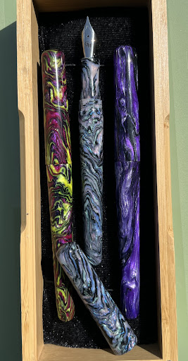 Read moreJohn makes the most exquisite pens. My favorite model is the D2. It is perfectly balanced and symmetrical. The cap fits beautifully and is nearly flush with the barrel of the pen. The step down from the barrel to the the section is almost imperceptible and the overall impression is similar to that of a modern desk pen. Customer service is amazing and he was happy to accommodate my request for pens commissioned in very...