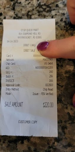Today I walked in to purchase 2 cartons of cigarettes. The lady at the counter told me $100 each. So I agreed. I also purchase two sodas. When I went back to the car and looked at my receipt I noticed a charge of $220 No where on this receipt shows cigarettes sodas or taxes. Clearly this woman punched in any number she wanted to. So not only is she ripping off customers but she's also ripping off the I r s. I also reported to the local police department. I do not live in rhode island I live in massachusetts. So hopefully those of you who are looking to buy cigarettes or whatever They don't. After reading all the reviews this business is terrible. It needs to be reported...