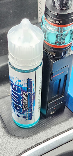 So we pay the money to test out flavors. Hubby is explaining to her what he's looking for. She gives her recommendations (we're new to vaping) on juices that are potent in flavor. She gives us a flavor to try. Hubby says he can't really taste it, so I tried it. I couldn't really taste the flavor either after a big hit.