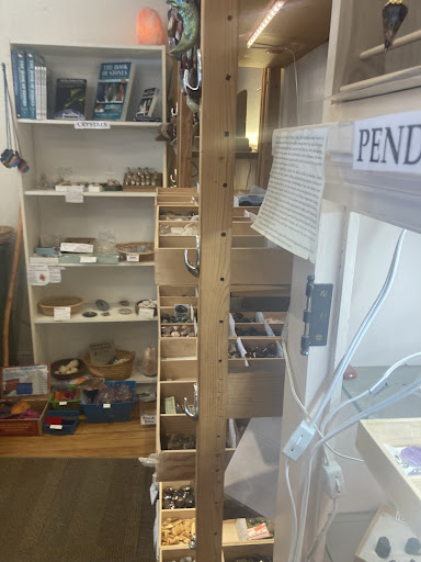 the store is well organized and had literally everything i could ever need for my practice, including candles of every color, essential oils, cauldrons, the most insane incense collection i've ever seen in one place, altar cloths, statues, railroad spikes (!!!!), herbs, and an absolute behemoth of a crystal collection. any stone, any cut, they've got you.