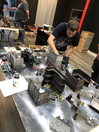 There are plenty of tables to play at and a huge selection of table top terrain to use. People are friendly there and I always see them playing games, painting, and hanging out for the day.