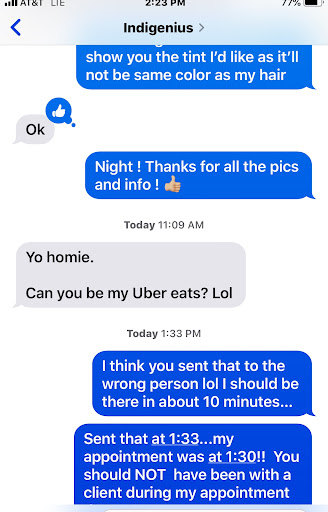 Read moreRude & texted me âYo Homey, wanna be my Uber eats!â Had a client during MY appointment time yet was outside watching me come in staring at me then had the audacity to tell me I was late & Iâd texted her 3 minutes from my appt (pic attached to prove time) I was on my way (local referral) They wonât get my business & are very discriminatory & unprofessional. Never apologized for sending the very inappropriate text either ! No pics on website & The classic lash extensions look like normal lashes with a coat of mascara & volume look like classic. Not worth the money & if she canât pay attention to who sheâs texting who knows what sheâd mess up on...
