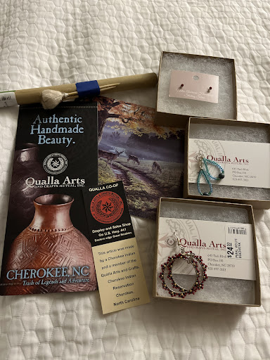 I stop by here 2 or 3 times a year when I am visiting from NJ. I like to purchase the hand made Cherokee items to collect and to give as gifts. There is a wide variety of handmade items here. I've purchased beautifully crafted wood bowls and carvings, bead jewelry, mats, dream catchers, carved stone, baskets, and very collectable Amanda Swimmer, H. Long, and Bigmeat black pottery. Some of the service personnel are extremely helpful when I ask the history of an item and its crafter. I am always interested in the Cherokee family relationships. Handmade arrows, slingshots, pea shooters, jewelry, even a leather dream catcher key chain are some of the affordable things I've bought my children over the years. There is a display room to observe the fine craftsmanship in the Qualla Arts and Crafts store, and a museum outside and opposite from...