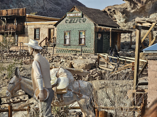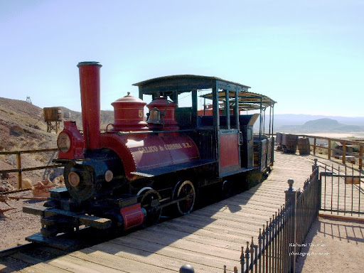 A small model train that goes in a circle around a hill. You have to pay per person to ride. It provides some cool views of the mountains and explains how miners staked claims on their territories and mines. There's also a cool view of a mine located far up the mountain called the...
