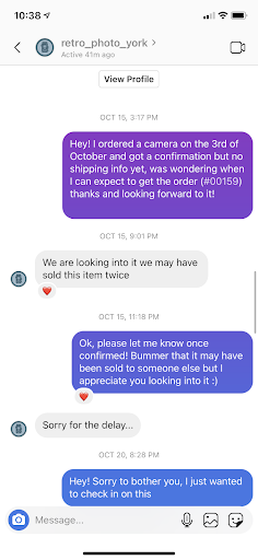 I hate to do this because I really love cameras and photography and despite this bad experience I still love looking at this place's merchandise. Maybe (hopefully) my experience is a unique one but I feel like I need to share it because the business owner should know how offensive his service has been. I ordered a camera on the 3rd of October (2020). It was around $180 and it was this really cool 3-D Nishika camera; I was excited about it. I got a confirmation on October 5th and haven't received a single update on my order since. On the 15th of October I contacted the business via Instagram messenger to ask where my order was. I know someone is active on it and figured if there was a better way I should contact them that they'd let me know. I'll attach screenshots of this conversation. We went back and forth and he let me know that they probably sold it twice but then took no action to correct the mistake. The business still owes me the money for the camera I bought and never received. He seemed unapologetic and forgetful that I even was a customer. After weeks of not hearing about my refund or receiving any updates at all, I considered buying a different camera from him (like I said, I like his merchandise) and having the transaction transfer over, which he seemed confused by. And even then I had to work to get a semblance of information from him. I asked him how much for a camera he suggested because for some reason he couldn't find the one I was considering on his website, and he said "the going rate". As a woman interested in photography this felt like a truly classic example of photography being this exclusive boys club. He didn't care about my money or my interest or my transaction. Didn't entertain it at all. I don't think he meant to exclude me in this way but that is certainly how it felt. I've worked in many customer service roles throughout my life and trust me when I say I'm sympathetic. I get being busy one week and not being able to get back to me quickly. I get being low on cash and just needing another week to send me the refund. That would be totally fine I just need the communication! As you can clearly see in the messages, I rarely push him. But when it adds up like it did and when I barely received a fraction of an apology, I can without hesitation say this was the worst customer service I've ever received. Again, hopefully I'm an anomaly, but this place needs...