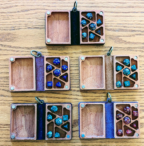 Today I finally got my Dungeon Journal, and it's so much nicer in person than it looked online! The leather feels amazing (the soft leather for the interior makes it feel so cozy and nice to write in, while the sturdier leather on the outside looks amazing), the wood spine has so much character, and the magnets and clasps are strong and hold everything together very well. I love how secure and roomy the spine storage is. I have a full dice set +my favorite standalone D20 and a spare pen in there, and I still have room for another couple of dice or a mini! On the interior of the journal, the magnetic pen strip is perfect for holding in my spare notes, and the very solid covers provide an excellent surface to write against.