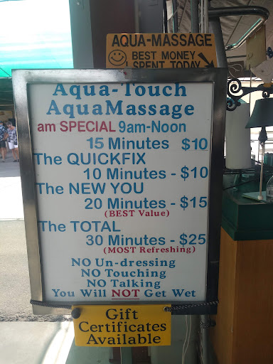 The second shop in going to be singing praise for 10/5, I'll definantly be returning so I hope you'll give it a shot. "Aqua-Touch Aqua Massage". It is going to be my go-to/best friend for aches till the Swap Meet closes. I ached for nearly two feet on my lower back. I've never done a massage for anything, much less my shoulders. And this made my day. I'm not as tense now, having got off a 15 hour shift, and I just did the 9-Noon special for $10. As you can see from photo two, the setting goes to 8, and I was maybe a 6.5. I'm definantly going to try for harder and longer next time. I would literally nap in that if I could. The host cleans each machine/nose cancelling headphones after use. She checks up to see how you're doing. If you bring a purse, she keeps it secure under the desk while you're in the machine. She was considerate and kind as a sweet pea. You need cash for services, and to me it's well worth...