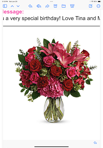 Read moreI was really happy with everything about this experience. I ordered online. I picked the picture of one of my flowers to look like and they look just like it. Delivery delivery prompt. The deliveries were for my mother‘s birthday And my mother told me that the men who delivered the flowers was very kind. What more could you ask for? True picture to picture, Promptness and kindness. Those are three things you can’t depend on anymore. The flower mine has my business as long as my mother lives in Yuma. What a great way to start your fourth quarter of life.