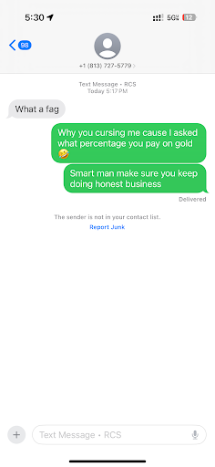 Read moreThey completely low ball the price when buying gold. I had a 9.41 grams 22 karat gold with receipts that everything was real and they offered 200 and something bucks. And then I went to a legit jewelry store and they bought it for 550 bucks. Don’t recommend going there. They’re more of a smoke shop rather than a gold buying place. They said they don’t have any evidence of me coming into the store today because they do ID checks at the door. That’s a lie. I got in. Told the guy I was looking to sell my gold chain he looked at it and said the price. I told him I was going to keep it then because I had sold a pair of earrings from the same store and 22 karat gold as well from 500 dollars and wouldn’t sell my chain less than that because the chain was more grams. He looked at his phone and said he couldn’t do 500 dollars. I said thank you and left and saw him puffing his vape while I was driving away. I was there around 1230pm. DO NOT RECOMMEND THIS PLACE IF YOURE TRYING TO SELL GOLD. they’re lying responding to these reviews with...