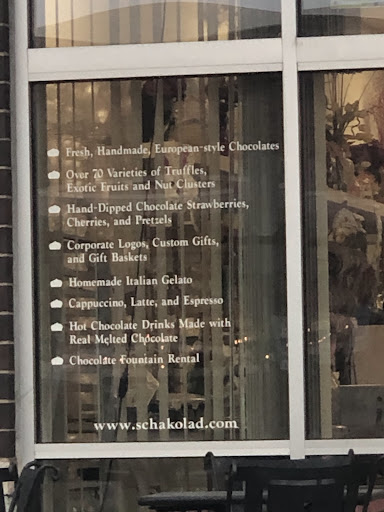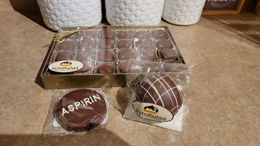 Most amazing hot chocolate and truffles ever!!! My wife and I were waiting for our movie to start at the cinema and we were early, so we went looking for some hot chocolate. Some police that were foot patrolling told us to just cross the street and go to Schakolad. I figured they would know, so we went and saw the most beautiful chocolate mixing machine, along with an amazing assortment of chocolates, but we didn't think they did hot chocolate. We smiled and started to head out when the lady asked if she could help us and I politely said we were just looking for some hot chocolate. She said, of course we have hot chocolate and pointed me to the cocoa bar. We almost missed the most amazing hot chocolate that I've ever tasted. This isn't some powdered Hershey's mix...this is the real deal. She put a full scoop of milk chocolate that was flowing from the mixer into a cup, added some hot water and milk and frothed it up, checking the temp with a hot gun to make sure it was just right. OMG!!! I spent 6 years in Italy, 3 years in Germany and never, have I ever tasted such a chocolate delight as I did that day. My wife was flabbergasted by the amazingly rich taste...and the personal touch. We already drank it by the time we got to the cashier...it was that good and perfectly heated. DO NOT PASS THIS PLACE UP...you will be doing yourself an injustice. Schakolad is...
