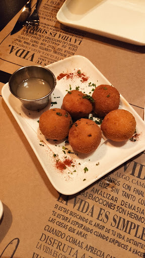 La comida está bien preparada, pero las porciones son demasiado pequeñas para los precios que tienen (por ejemplo, pagamos $320 por 5 croquetas de 2cm. de diámetro y $590 por un bife ancho de tamaño a penas más grande que un puño, el cual no llegó a la foto debido al hambre que teníamos). Si se quiere panera, hay que pagar $60, sino te traen 4 tostadas y 6 aceitunas. Literal. La tortilla fue lo más acorde.