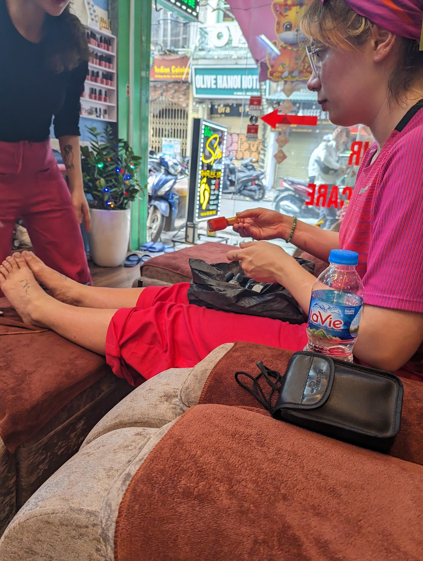 The whole experience was so uncomfortable from the start to finish. I couldn't wait to get out of that chair to leave and rewash/brush my hair myself. My partner had the same facial experience but didn't have any issues with the hair shampoo and massage (he also didn't get soap and finger nails shoved up his ears).