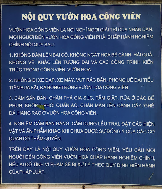 This is a good park in routine days. But on 8th September 2024, there are several uprooted trees. All due to Super typhoon Yagi. This park is opposite Dòng Mến Thánh Giá Hà Nội ( Lovers of the Holy Cross Hanoi). The rules of the park are given in Vietnamese language. There are translated below :- RULES OF THE PARK GARDEN