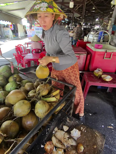 Everything here is very fresh, but it’s best to go early, around 6-7 am. By midday, many vendors take a break, and while you can still find fruits and vegetables, meat and seafood will likely be sold out or in short supply. Couple of fruit vendors do stay open until 8-9 pm, so you can grab fresh fruit later in the day if needed.