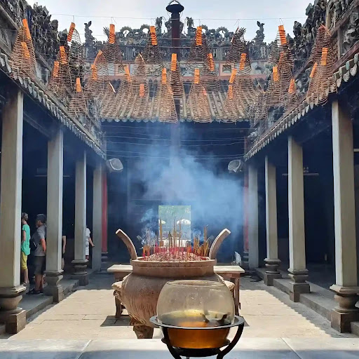 The temple was built by the Cantonese community in the late 18th century and features a blend of Chinese and Vietnamese architectural styles. The front entrance of the temple is adorned with elaborate woodcarvings and colorful ceramic mosaics, depicting scenes from Chinese mythology and legends.