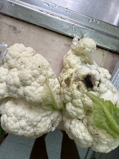 Ngày 21/5 tôi đặt grab đi chợ mua một số món, trong đó có bông cải trắng với tem nhãn ghi ngày cân hàng là trưa 21/05. Khi nhận hàng tôi không kiểm tra vì tin tưởng đã đặt hàng tại một chi nhánh thuộc chuỗi lớn, sau khi nhận hàng thì cất tủ lạnh. 2 ngày sau, lấy ra để cắt chia nhỏ thì phát hiện phần bông cải bị hư nặng, không thể ăn được, có thể gây nguy hiểm ngộ độc thực phầm như sau: Có dấu hiệu đã bị cắt xén bớt phần bị hư đen Nhiều chỗ bị đen và mốc đen nặng Trong khi vấn đề là trên tem nhãn của sản phẩm có ghi ngày cân hàng là trưa 21/5 (tức trưa cùng ngày mua hàng). Nghĩa là đáng ra đây phải là một bông cải trắng đẹp mới chứ không phải mốc đen nặng như vậy, bông cải là món không thể nào hư đen nặng như vậy chỉ mới 2 ngày.