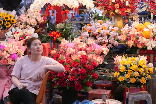 Những âm thanh xầm xịch của xe tải, lời nói kỳ kèo của kẻ bán người mua; hình ảnh người người khuân vác những bó hoa tươi, chủ sạp chăm sóc hoa, người mua khẽ khàng chọn từng nhánh hoa,… cùng đan xen, lẫn vào nhau tạo thành bức tranh nhộn nhịp, sống động giữa Sài Gòn bình yên đang đón chờ mặt trời ló dạng bắt đầu ngày mới.