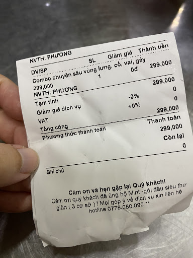 Vòi gội không chỉnh giảm nhỏ lại, mặt rửa vẫn còn trơn dầu chưa rửa sạch, lúc nâng đầu lên gội còn vô tình để móng tay đâm vào đầu của mình, lúc matxa đầu còn phát ra âm thanh không biết nên miêu tả như thế nào nữa, nhưng cụ thể là cảm giác như mình làm gì có lỗi với bạn ấy xong giờ được trả thù hay sao á, hoặc có thể tâm trạng của bạn hôm nay không tốt, dùng gói 139k nhưng chẳng giống dưỡng sinh.