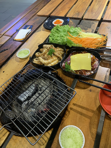 Quán thì đông mà nhân viên có vẻ không đủ nên gọi món khá lâu, phục vụ cũng lâu, so với những quán như Sườn Cay BBQ, Gogi House, Sumo BBQ, Mr.Park,... thì nhân viên thường canh vỉ vừa cháy thì đã chủ động đổi vỉ còn bên này thì phải yêu cầu mới đổi vỉ, bếp cũng nhỏ, dùng than thường chứ không phải than bi. Nói chung về phục vụ thì kém.