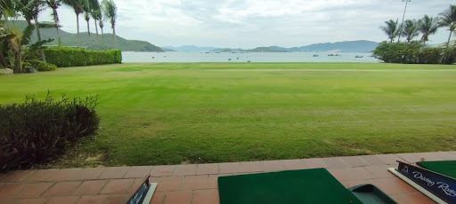 다이아몬드베이 리조트앤 스파에서 투숙하면서 방문했습니다. 리조트에서 도보로 10분 거리에 위치하고 있고 리조트 정문으로 나가서 좌회전 하셔서 쭉 걸어가시면 됩니다. 천연잔디, 공100개, 7번 아이언 1개 렌트해서 80만동입니다. 한국돈 4만원인데 지인들에게 물으니 저렴한건 아니라고 합니다. 골프를 목적으로 나트랑에 오셨다면 라운딩을 하실테니 여기 오실일은 없으실거고 다이아몬드베이리조트에 묵었는데 어? 바로 옆에 연습장이 있어? 한번 가볼까? 하시면 좋은 선택이 될 수 있습니다. 골프채가 없어도 대여료 내시면 다 빌려줍니다. 천연잔디가 아닌 지붕있는 곳에서 하시면 보다 저렴합니다. 낮에 가시면 너무 더워서 돌아가실 수 있고 오후 5시쯤 방문해서 노을 보면서 연습하시면 좋은 추억이 될 수 있겠네요. 바다를 향해 날리는데 나룻배를 타시며 유유자적 공을 건지시는 베트남 아저씨를 보는 재미도 있습니다. 혹시 맞을까봐 뽈 을 외치는 사람은 저 밖에 없었다는... 주변의 베트남 형님들은 너무나 익숙한 모습이었던 것 같아요. 멋진 사진도 건지시고 골프 연습도 하신다 생각하시면...