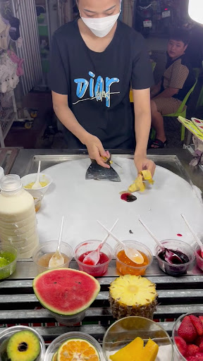 The highlight? The Thai-style rolled ice cream made right in front of you — a show of skill and speed, with fresh ingredients and amazing textures. The result is as beautiful as it is delicious.