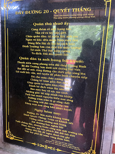 Read moreMột địa điêm linh thiêng hào hùng, con đường dài 126km lượn qua Lào rồi nhập vào đương 9. Hơn 4000 anh hùng liệt sỹ đã hy sinh ở đây. Tổ quốc, nhân dân nghiêng mình kính cẩn, đời đời nhớ ơn công sức của các anh...